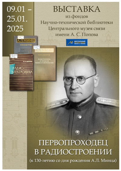 Александр Львович Минц (8 января 1895 [27 декабря 1894 по ст. стилю], Ростов-на-Дону — 29 декабря 1974, Москва) — радиофизик, инженер и организатор науки. Получил теоретическую подготовку в Московском университете и еще в студенческие годы начал научно-исследовательскую работу в области радиотехники. В 1923 году он организовал Научно-испытательный институт связи (НИИС) и стал его первым начальником. Работы А. Л. Минца в НИИС были посвящены радиотелефонии и радиопередаче по коротким волнам. Он руководил постройкой опытного радиотелефонного передатчика в Сокольниках, через который было начато регулярное радиовещание в нашей стране. С именем Минца связаны первые трансляции оперных и драматических спектаклей, а также начало трансляции по радио боя курантов Спасской башни Кремля. Александр Львович Минц по праву считается одним из самых выдающихся радиоспециалистов XX века, благодаря которому стала возможной столь желанная властям радиофикация всей страны. В 1928 году А. Л. Минц возглавил созданное в Ленинграде Бюро мощного радиостроения. Благодаря работам Минца и его группы была построена серия мощных радиостанций, самые известные из которых — радиостанция имени ВЦСПС (100 кВт, 1929), имени Коминтерна (500 кВт, 1933). В итоге, Советский Союз вышел на первое место в мире по мощному радиостроению. В послевоенные годы Минц работал над созданием больших наземных радиолокационных станций для систем контроля космического пространства, раннего предупреждения о ракетном нападении и противоракетной обороны, а также был научным руководителем разработки систем радиоэлектроники для мощных ускорителей заряженных частиц Объединённого института ядерных исследований. В 1950 году «за совокупность выдающихся работ в области радиостроения и других областях радиотехники» Александр Львович Минц был удостоен золотой медали имени А. С. Попова, став третьим ее обладателем после В. П. Вологдина и Б. А. Введенского, а в 1958 году ему было присвоено звание академика АН СССР. Выставка представляла материалы, рассказывающие о жизни и научной деятельности А. Л. Минца: его научные работы, биографические издания, раскрывающие вклад ученого в отечественную науку и инженерное дело, а также рассказывающие о непростом жизненном пути одного из самых выдающихся радиоспециалистов XX века. |