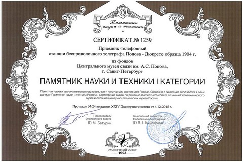 Экспонат признан памятником науки и техники I категории.