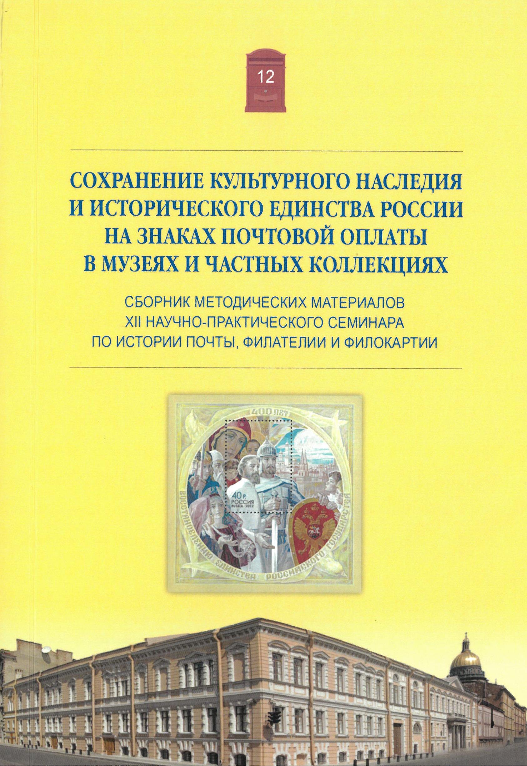 Сохранение культурного наследия и исторического единства России на знаках почтовой оплаты в музеях и частных коллекциях: Сборник методических материалов XII научно-практического семинара по истории почты и филателии: Санкт-Петербург: ЦМС имени А. С. Попова, 2021.- 307 с.