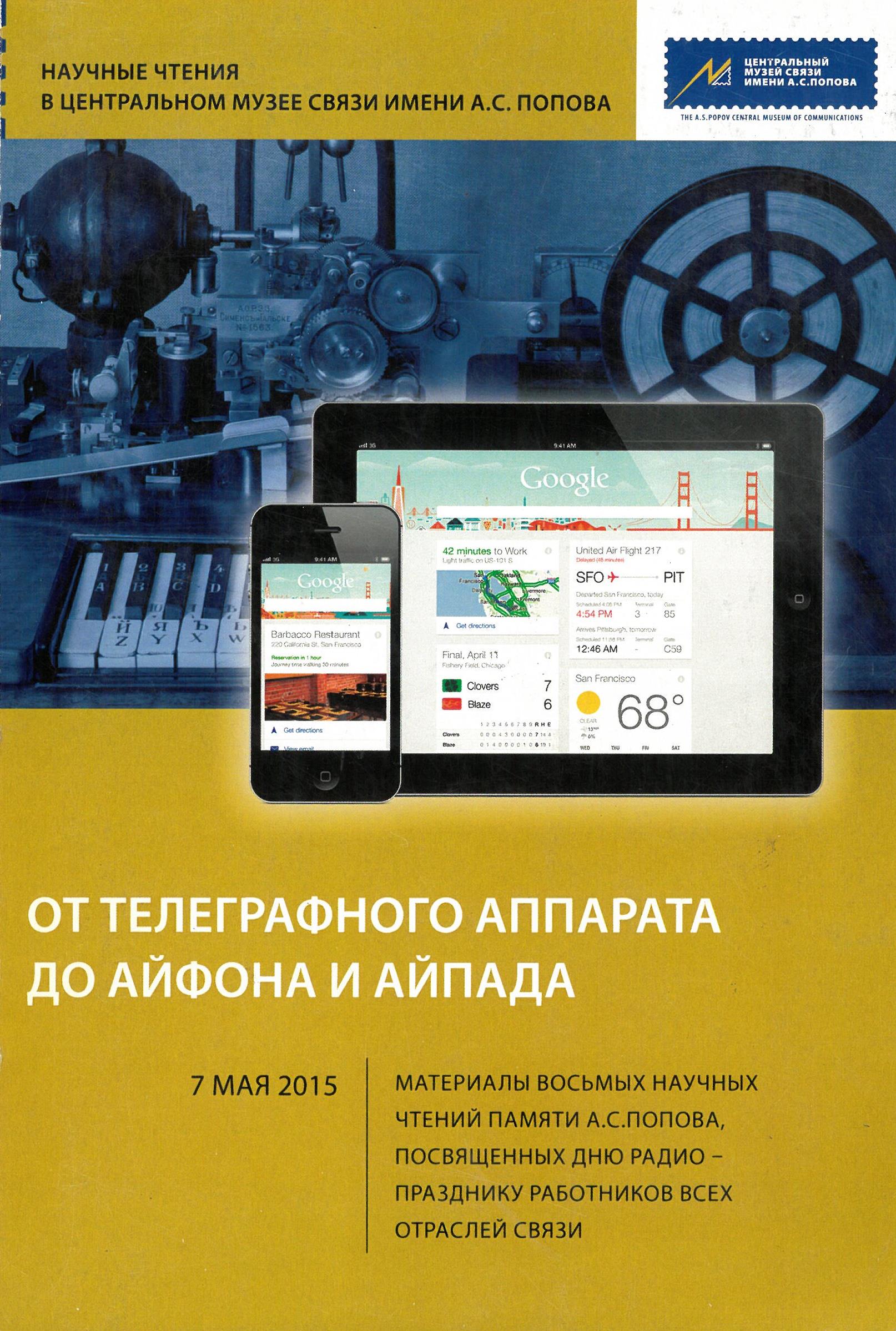 От телеграфного аппарата до айфона и айпада: материалы Восьмых научных чтений памяти А. С. Попова, посвященных Дню радио — празднику работников всех отраслей связи (7 мая 2015 г.). — СПб.: Центральный музей связи имени А. С. Попова, 2015. — 172 с.