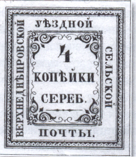 В каталоге «Земские почтовые марки», изданном под редакцией Ф. Г. Чучина в 1925 году, отмечено, что первая земская марка появилась в Шлиссельбургском уезде Санкт-Петербургской губернии в 1865 году. Однако исследователь земских марок и автор ряда статей о земской почте Ю. Рудников на основании архивных документов доказал, что почта в Шлиссельбургском уезде была открыта лишь в 1877 году. По всей видимости, первая земская марка была выпущена в Верхнеднепровском уезде Екатеринославской губернии 1 декабря 1866 года.