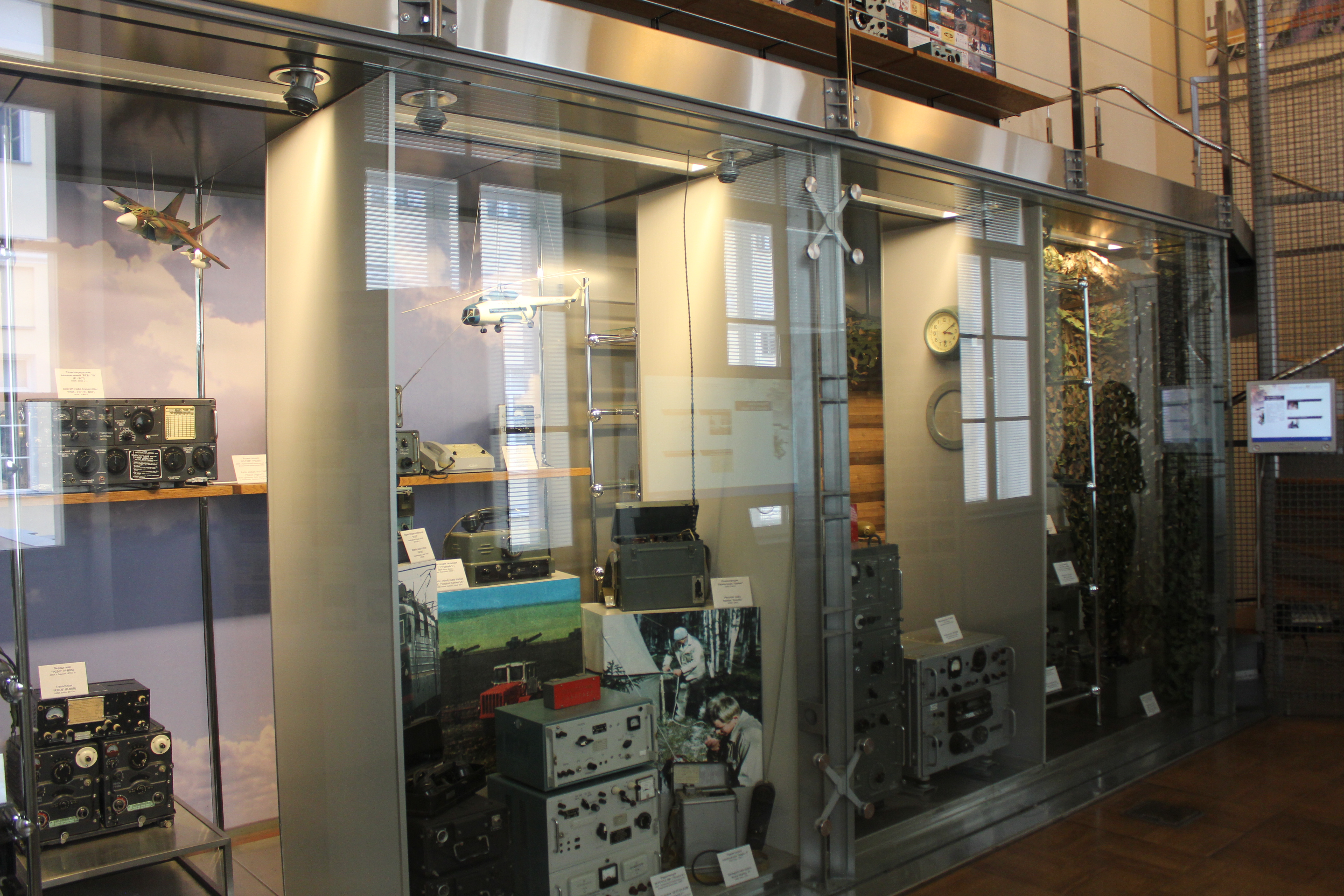 Дальнейшее развитие радиосвязи в СССР шло по пути освоения диапазонов коротких радиоволн, которые позволяли устанавливать дальние и сверхдальние связи на тысячи километров при передатчиках небольшой мощности. В этом зале вы можете познакомиться с образцами радиоаппаратуры, применявшейся в народном хозяйстве, в армии и на флоте в 30-50 гг. XX в.